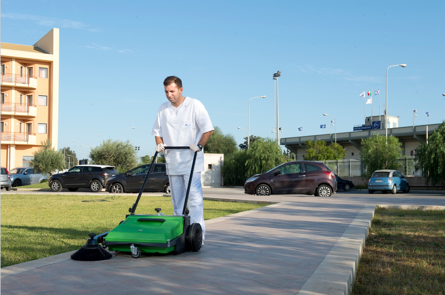 2、IPC手推式掃地機(jī)、造型新穎、使用方便、綠色環(huán)保、節(jié)能高效,清掃效率是傳統(tǒng)人工掃帚的4-6倍,特別適合清掃街道、小區(qū)、公園、庭院、學(xué)校、車間、庫房以及大型活動(dòng)場(chǎng)館等不宜使用動(dòng)力驅(qū)動(dòng)型清掃設(shè)備的場(chǎng)所。